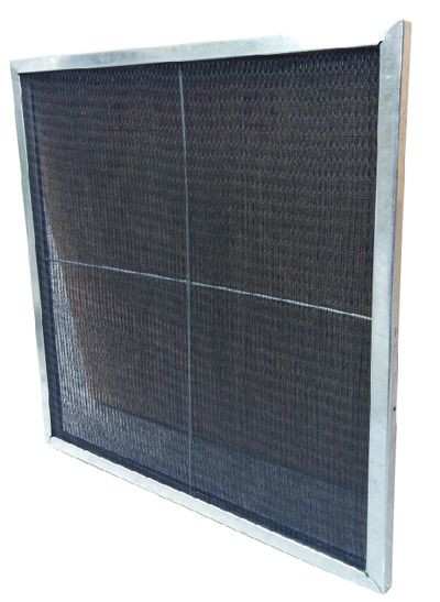 1.采用初效無紡布平鋪于框架內(nèi),濾料雙面金屬網(wǎng)固定。