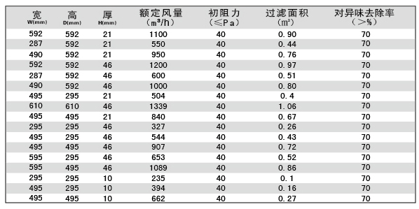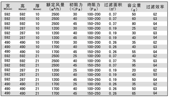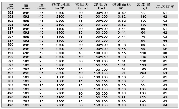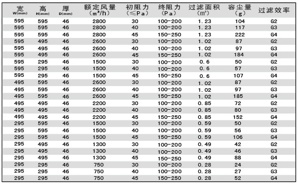 用戶選購(gòu)指南-板式初效活性炭過濾器技術(shù)參數(shù)