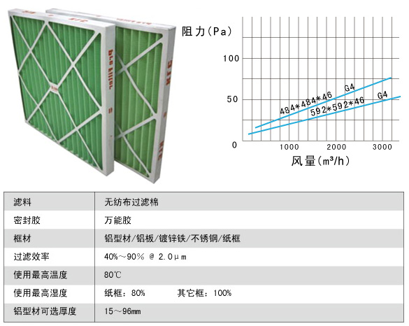 紙框折疊式初效過濾器風(fēng)阻及運(yùn)行條件說明