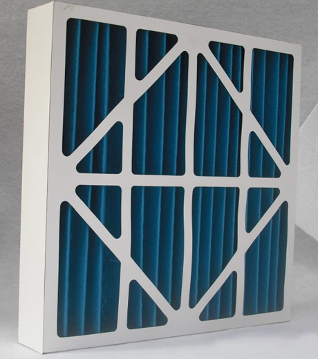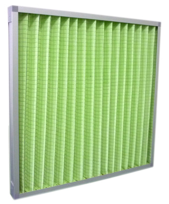 過濾材料是以折疊形式裝入高強(qiáng)度摸且硬紙板內(nèi),迎風(fēng)面積增大,流入的空氣中的塵埃粒子被過濾材料有效阻擋在摺與摺之間。潔凈空氣從另一面均勻流出。因此氣流通過過濾網(wǎng)是平穩(wěn)和均勻的。視過濾濾料不同。它所攔截粒子的粒經(jīng)從0.5um到5um而不同。過濾效率也不同。