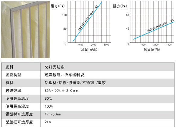 G4級(jí)化纖袋式初效過濾器主要用于新風(fēng)過濾系統(tǒng),具有容塵量大,風(fēng)量大等特點(diǎn)。G4級(jí)化纖袋式初效過濾器濾袋顏色以綠色和白色無紡布為主