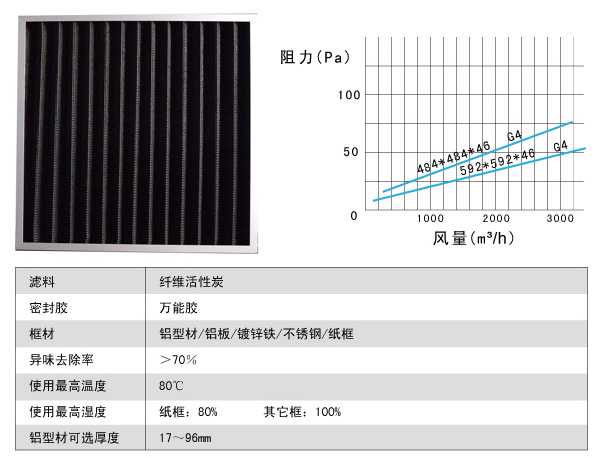 板式初效活性炭過濾器運(yùn)行條件及風(fēng)阻圖