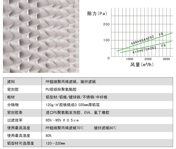 有隔板亞高效過濾器主要性能: